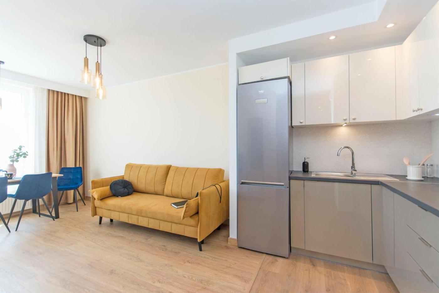 Apartament typu Superior. Featuring a private entrance, this apartment is comprised of 1 living room, 1 separate bedroom and 1 bathroom with a bath or a shower. In the well-fitted kitchenette, guests will find a stovetop, a refrigerator, a dishwasher and kitchenware. Boasting a balcony with city views, this apartment also offers a washing machine and a flat-screen TV. The unit offers 2 beds. Apartament - 4 osobowy. Powierzchnia pokoju ok.: 37 mkw. ;