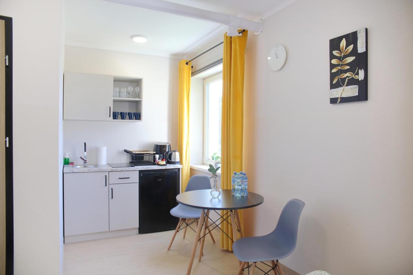 Studio typu Standard. Providing free toiletries, this studio includes a private bathroom with a shower, a hairdryer and slippers. In the well-equipped kitchenette, guests will find a stovetop, a refrigerator, kitchenware and a tea and coffee maker. This studio features a dining area, a wardrobe, a flat-screen TV and a quiet street view. The unit offers 2 beds. Studio - 4 osobowy. Powierzchnia pokoju ok.: 17 mkw. ;