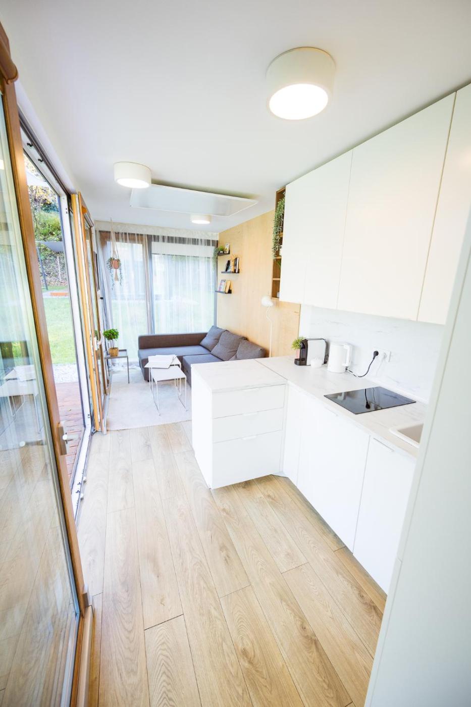 Dom z 1 sypialnią. Featuring a private entrance, this air-conditioned holiday home comprises 1 living room, 1 separate bedroom and 1 bathroom with a shower and a hairdryer. In the well-fitted kitchenette, guests will find a refrigerator, a dishwasher, kitchenware and a microwave. The holiday home features a coffee machine, a seating area, a wardrobe as well as a terrace with garden views. The unit offers 2 beds. Dom wakacyjny - 4 osobowy. Powierzchnia pokoju ok.: 25 mkw. ;