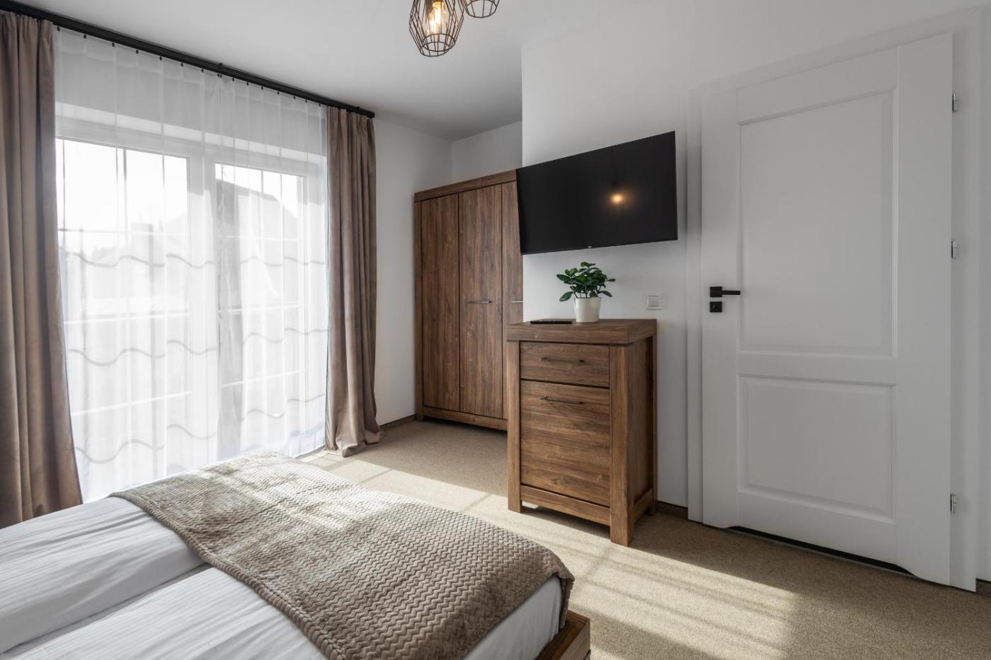 Apartament typu Deluxe. This apartment features 1 living room, 1 separate bedroom and 1 bathroom with a shower and a hairdryer. In the fully equipped kitchenette, guests will find a stovetop, a refrigerator, a dishwasher and kitchenware. Boasting a terrace with garden views, this apartment also features a tea and coffee maker and a flat-screen TV with cable channels. The unit has 2 beds. Apartament - 4 osobowy. Powierzchnia pokoju ok.: 34 mkw. ;