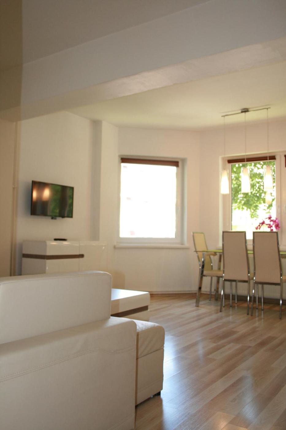 Apartament typu studio. Featuring a private entrance, this apartment is comprised of a kitchen, 1 bedroom and 1 bathroom with a walk-in shower and a hairdryer. Meals can be prepared in the kitchen, which is fitted with a stovetop, a refrigerator, kitchenware and an oven. The apartment offers a tea and coffee maker, a wardrobe, a sofa, parquet floors and a flat-screen TV with satellite channels. The unit offers 2 beds. Apartament - 4 osobowy. Powierzchnia pokoju ok.: 35 mkw.