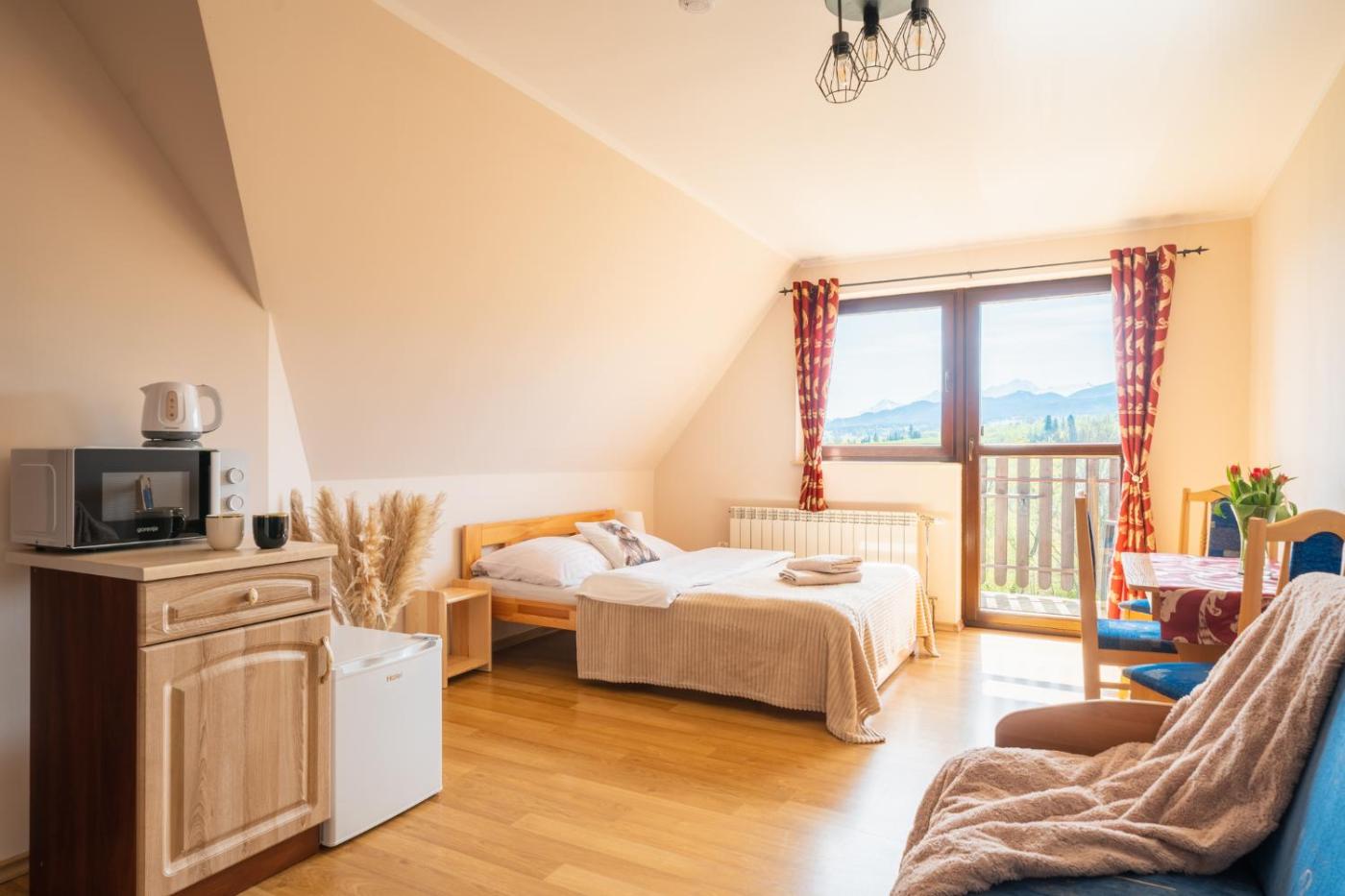 Pokój czteroosobowy z widokiem na góry. Guests will find a refrigerator, kitchenware and a microwave in the kitchenette. The quadruple room also provides guests with a barbecue. The quadruple room provides a tea and coffee maker, a wardrobe, a balcony with garden views as well as a private bathroom featuring a shower. The unit offers 3 beds. Pokój Czteroosobowy - 4 osobowy. Powierzchnia pokoju ok.: 20 mkw. ;